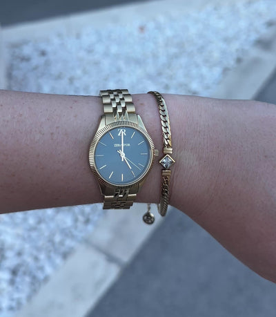 Be enchanted by the captivating black dial of the Zera D’or Eternal watch and enjoy the admiration it draws. Black always appears slightly different, giving each watch a unique character. The minimalist 28 mm case is refined and elegant, while the practical butterfly clasp ensures effortless wear and exceptional comfort. The link bracelet is adjustable for a perfect fit using the included pin remover. A timeless piece that deserves a place in your jewelry collection.